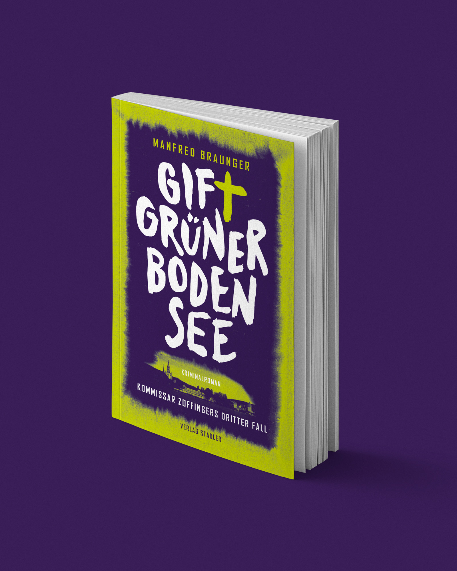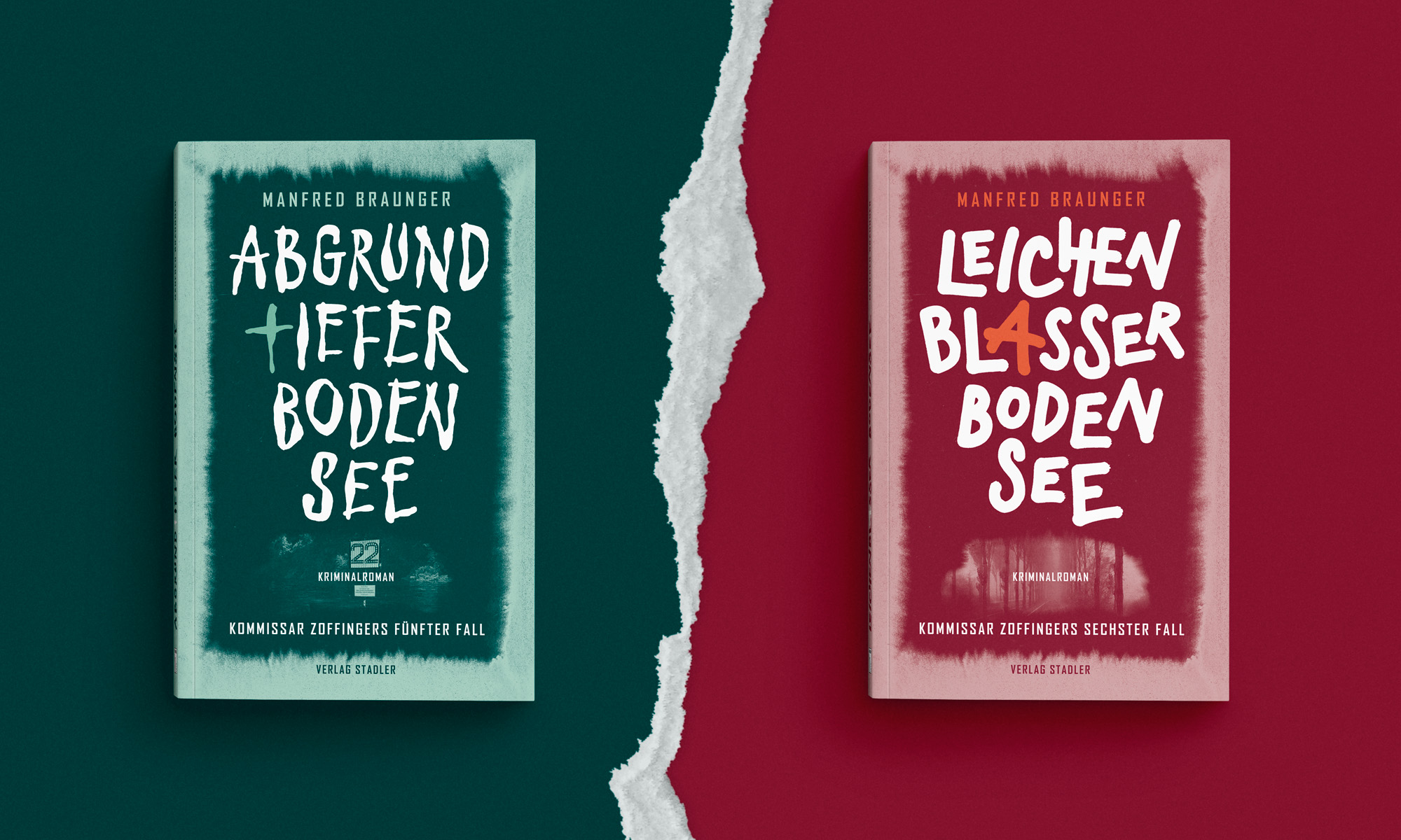 Für die Krimireihe um Kommissar Zoffinger von Manfred Braunger habe ich die Buchumschläge gestaltet. Jeder Band hat seine individuelle handschriftliche Typografie und Farbkombination, abgestimmt auf den jeweiligen Titel.