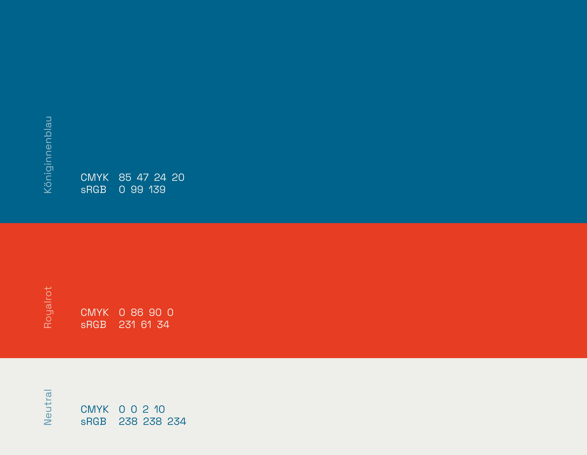 Die Primär- und Sekundärfarben orientieren sich an der Farbsymbolik der Maria Königin.