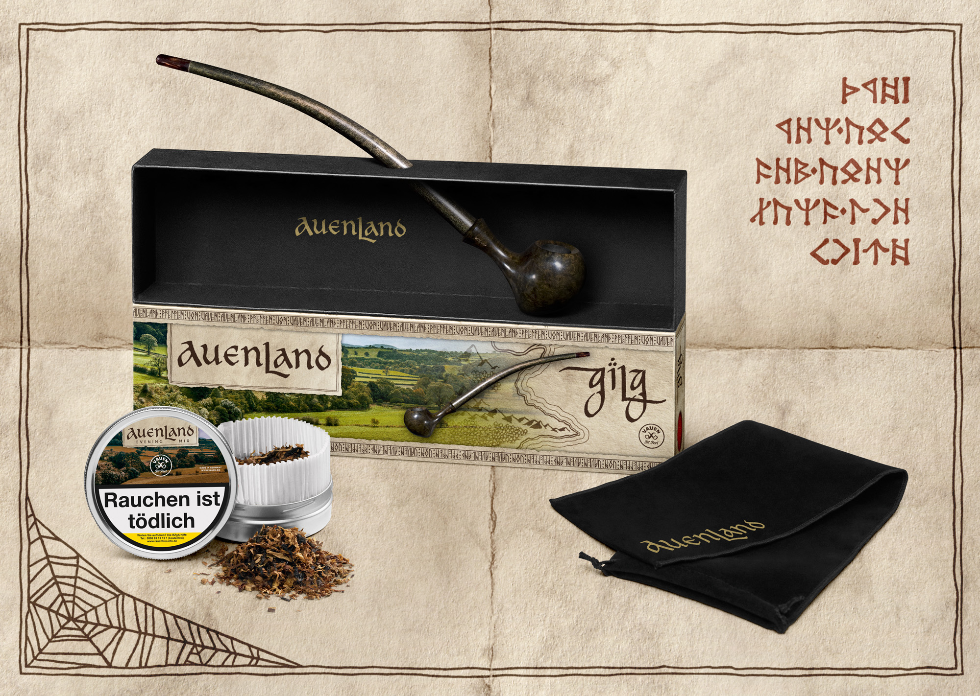 Eines meiner absoluten Lieblingsprojekte sind die AUENLAND-Pfeifen von Vauen. Angelehnt an die Geschichten und Verfilmungen „Der Herr der Ringe“ und „Der Hobbit“ von J.R.R. Tolkien, habe ich für diese Kollektion das Logo und Packaging gestaltet.