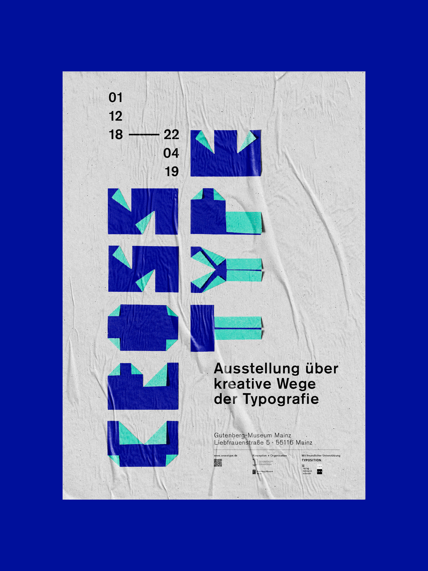 Plakatentwürfe mit experimenteller Typografie für die fiktive Ausstellung Crosstype.
